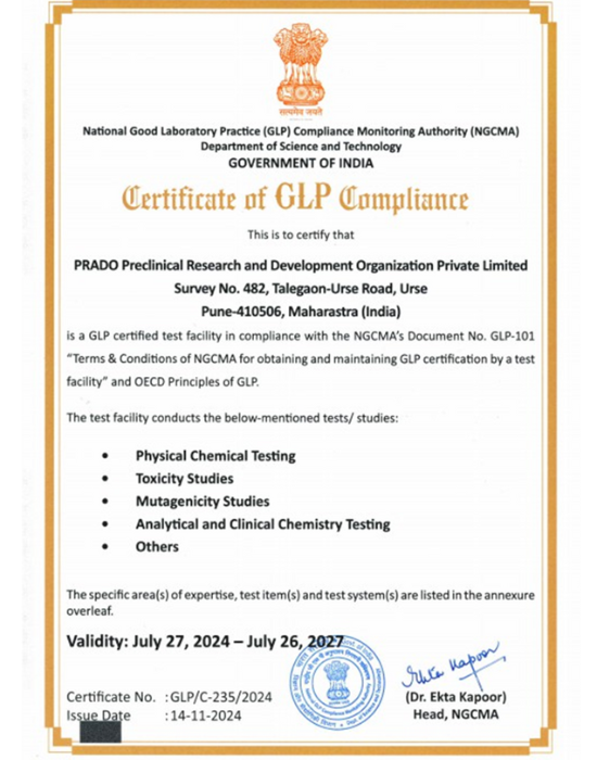At PRADO, we adhere to the highest global standards in preclinical research, backed by industry-recognized certifications and approvals: